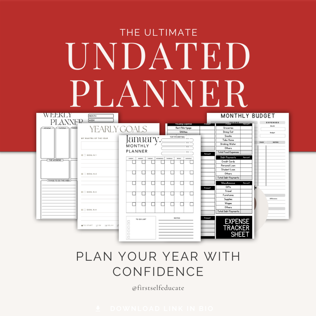 Full Ultimate 2024 undated planner with everything you need to organize both your life and your finances. The Planner contains: